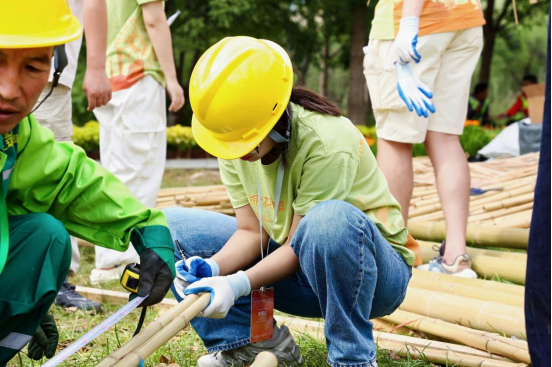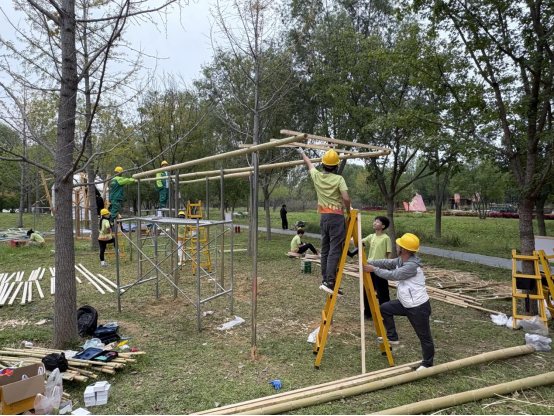 决赛现场搭建阶段在北京南苑森林湿地公园进行,在为期三天的紧张施工中,同学们迎难而上,将课堂所学的理论知识灵活运用于实践,展现了出色的现场问题解决能力。最终,团队成员通力协作,高效高质地完成了花园从图纸到实体的完美呈现。
