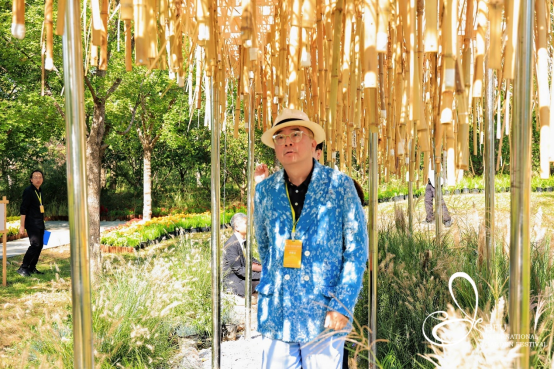 作品《天河引》的创作灵感源于中国古典神话中联结天地、象征浩瀚宇宙的“天河”意象,结合中国山水人居思想,用简单生态的日常材料构建了一处虚实相生、光影交织的诗意的园林小筑。游离其间,风动、竹动、心动,感悟自然生命的律动。