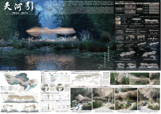该赛事已连续举办八届,今年选址北京市丰台区南苑森林湿地公园,以“生命花园”为设计主题,打造生态与人文交融的实践载体。本次竞赛吸引了来自国内外200余所高校的400多组团队、总计2000余名园林学子报名参与。历经初赛、复赛多轮匿名评审的严格遴选,最终10组团队作品晋级决赛进行现场建造评奖阶段。由我院本科生王语涵、刘力菲、刘珈瑜、郑钰凯、蓝煜宗、肖含章、何子娟共同完成的方案“天河引”(指导老师陈西蛟),在南苑森林湿地公园落成,并荣获二等奖。