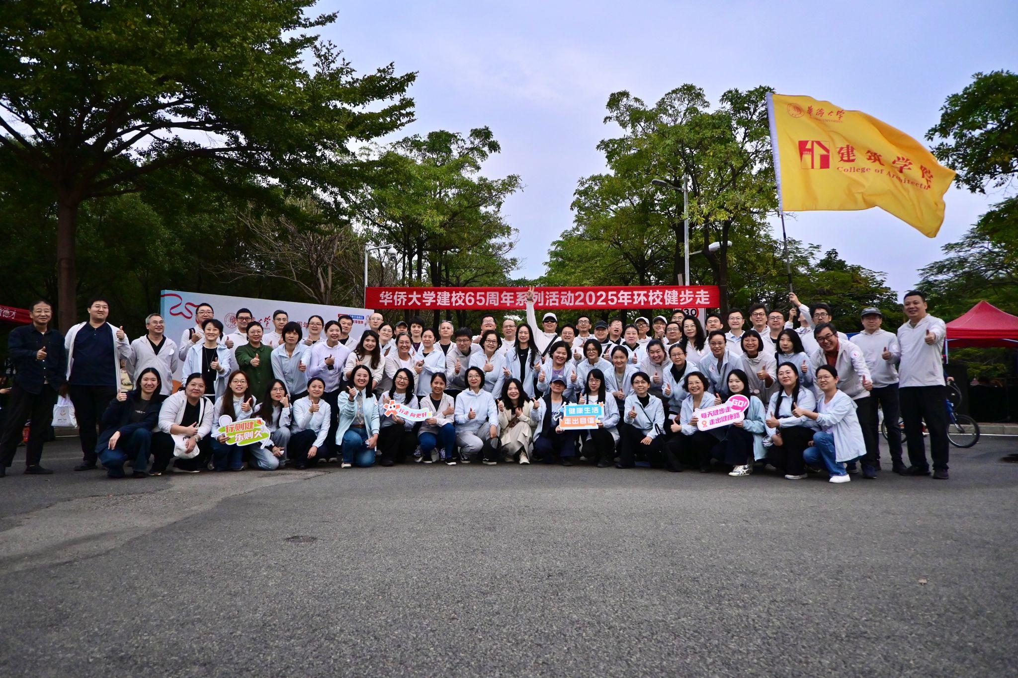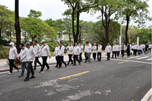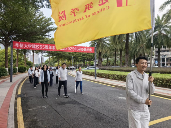 随着出发枪响,全校行进队伍正式出发,大家并肩漫步在校园之中,一边畅快地交流着教学中的新思路、生活中的小确幸,一边回忆着学院发展历程中的难忘片段以及共事时的温馨瞬间。沿途熟悉的楼宇、草木,唤起了大家共同的记忆,每一步都承载着专属于建院人的温情联结,同事情谊也在这一路的并肩前行中愈发深厚。