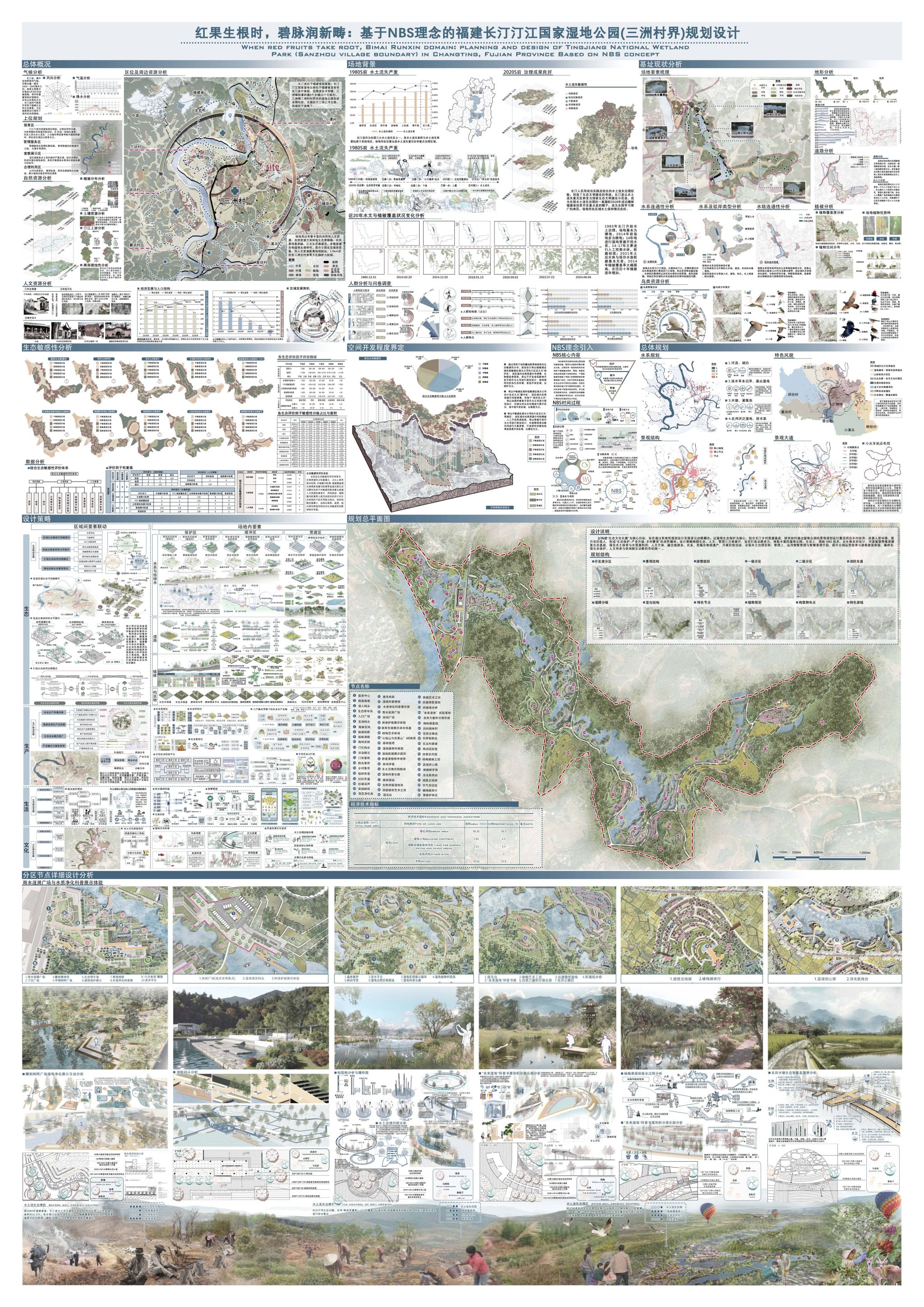 本科生卓越作品《红果生根时,碧脉润新畴——基于NBS理念的福建长汀汀江国家湿地公园(三洲村界)规划设计》