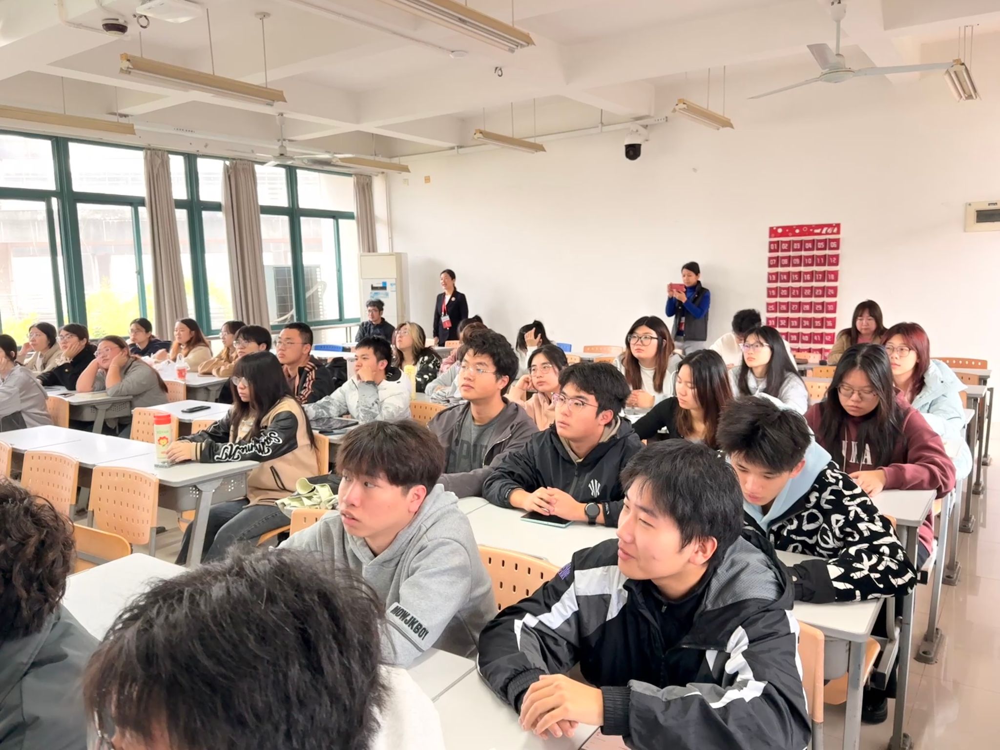 从检查情况来看,新学期开学首日教学运行整体平稳有序,课堂秩序良好。任课教师备课充分,精神饱满,授课认真投入;学生出勤率高,听课专注,课堂互动积极,展现出良好的学习状态与师生风貌,也体现了学院规范有序的教学氛围。